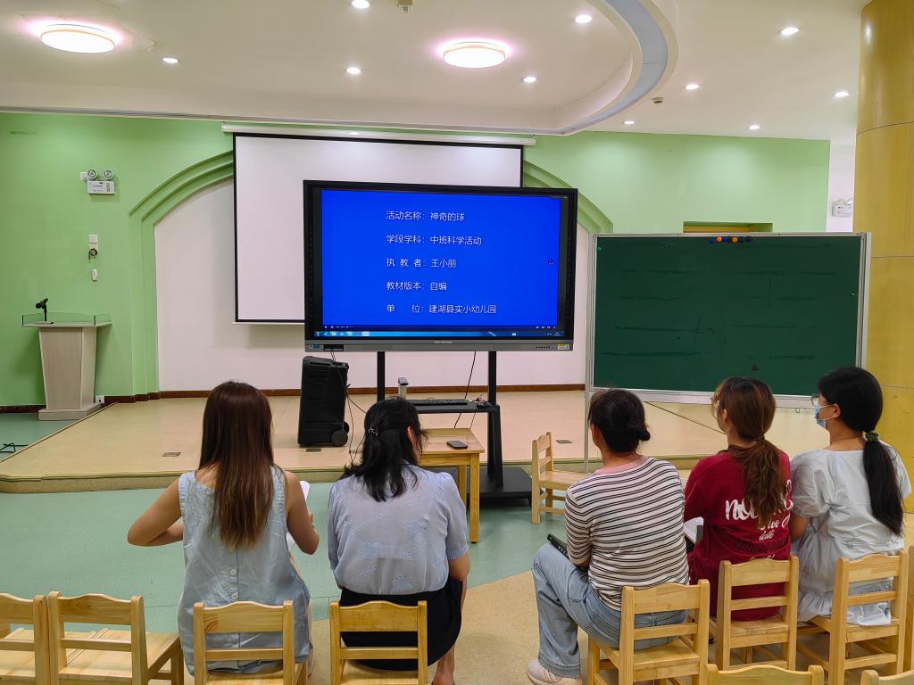 本次活动以教学活动视频《神奇的球》为研究对象,通过观摩、研讨与教案优化,为科学启蒙教育的实践注入新活力。在研讨环节,教师们从幼儿园科学教育启蒙的角度展开热烈讨论,剖析视频中激发幼儿科学好奇心与探索欲望的教学方法。基于观看视频的收获,教师们群策群力,对上一次研修中设计的科学活动《球球大比拼》教案进行优化。在材料拓展、记录方式、原理呈现方面提出了进一步优化意见。