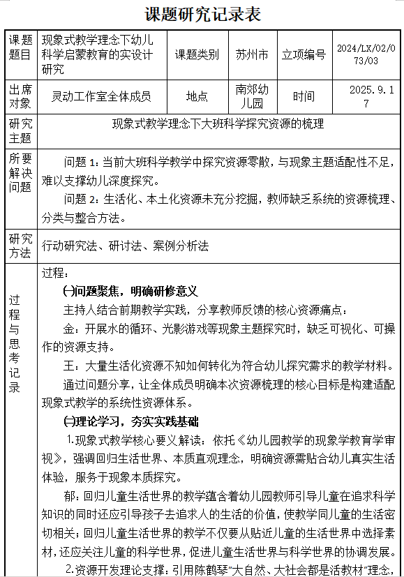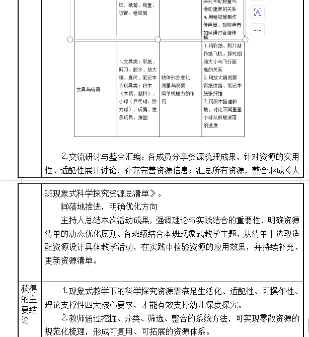 灵动工作室:大班现象式教学理念下科学探究资源梳理活动记录